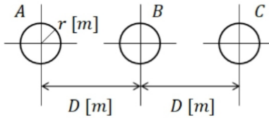 - 3상 송전선로의 단위 길이당 인덕턴스 LL를 계산할 때,