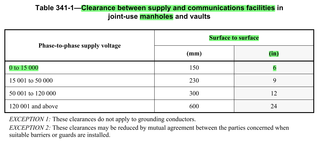 - 공동 사용 맨홀(Manhole) 또는 전력실(Vault) 내에서 전력 및 통신 시설(케이블, 장비 등)을 설치할 경우, 관련된 모든 당사자들의 동의가 있어야 한다.
