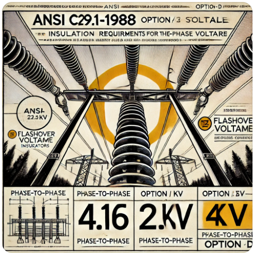 - 절연체의 플래시오버 전압은 그 절연체가 견딜 수 있는 최대 전압을 말하는데, 이 값은 ANSI C29.1-1988 규격에 맞춰야 한다.