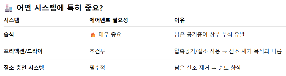 특히 습식 시스템에서 체류 공기로 인한 부식 문제를 해결하는 데 효과적