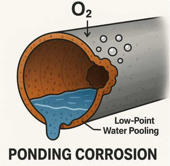 3️⃣ 미량의 물배수(Drainage) 불완전 → "웅덩이 부식(Ponding corrosion)"