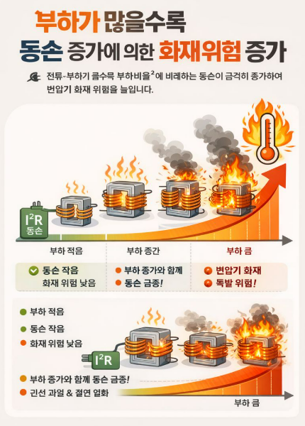 🔥 동손 증가 → 온도 상승 → 화재 위험 증가