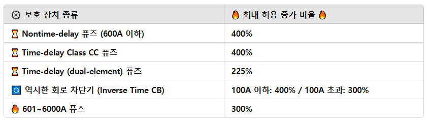 ➡️ 특정 조건에서 보호 장치의 정격을 높일 수 있음 🔥