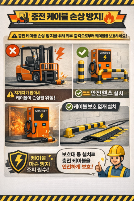 👉 전동지게차 충전설비는 “전기 안전 + 화재 예방 + 작업자 안전” 3가지가 핵심!